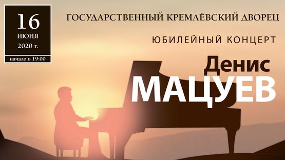 16 июня 2021 года на сцене Государственного Кремлевского дворца свой юбилей отмечает один из популярнейших пианистов современности, виртуоз, ставший мировым символом эталонной фортепианной игры, Народный артист России — ДЕНИС МАЦУЕВ.